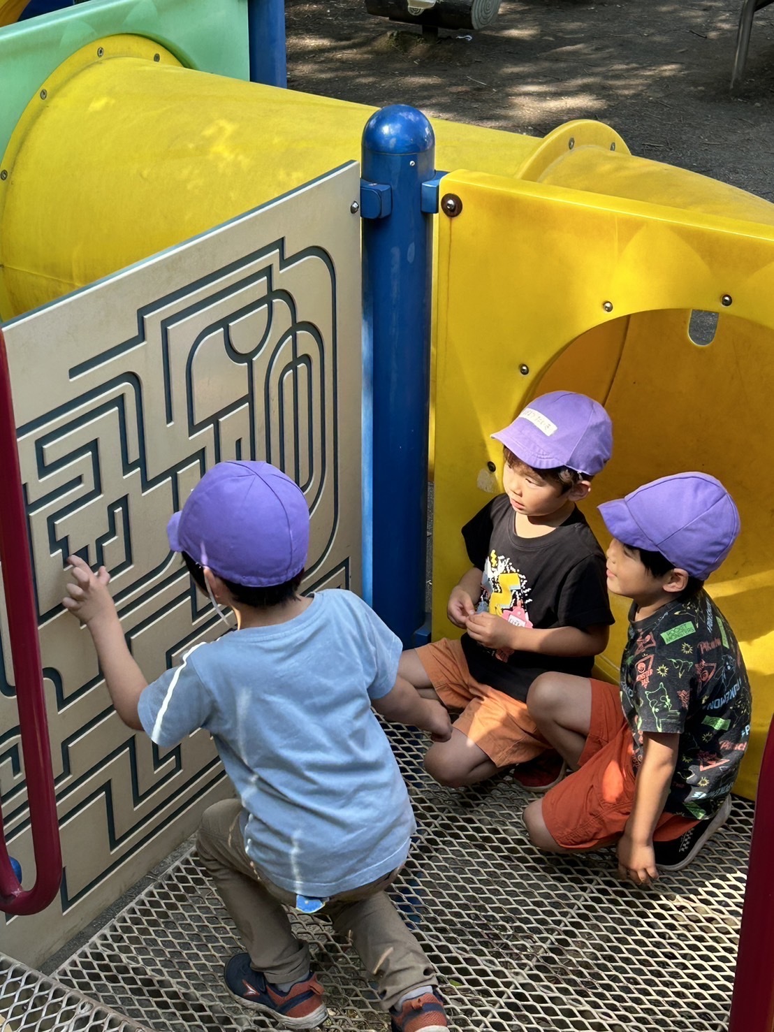 お迎えの時間まで楽しくを過ごせるよう園庭遊びや室内遊び、制作活動の他、英語遊びやホールでのミニシアター等のお楽しみがあります。